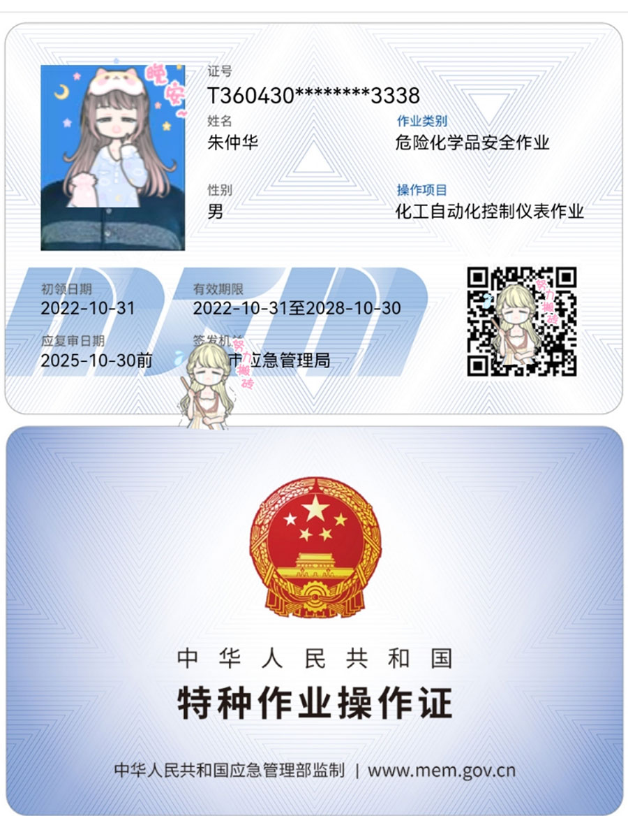 應急管理局危險化學品安全作業證,化工自動化控制儀表作業,過氧化工藝作業,烷基化工藝作業,氧化工藝作業,加氫工藝作業,從業人員上崗證,特種作業證是3年一審。