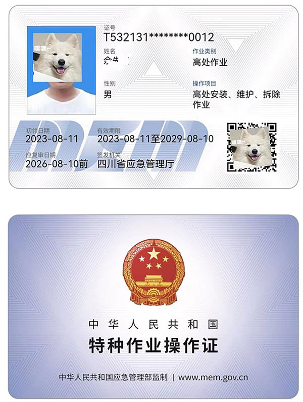 應急管理局《特種作業人員證書》低壓電工作業,高壓電工作業,熔化焊接與熱切割作業,高處安裝維護拆除作業 ,登高架設作業, 制冷與空凋設備運行操作作業, 制冷與空凋設備安裝修理作業,特種從業人員上崗證是每3年一審!
