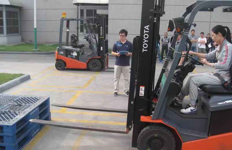(2)叉車駕駛課程:學習叉車操作步驟和低、中、高貨位實際鏟貨等駕駛技術。